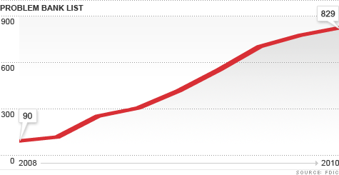 This CNN report says that banks are still not lending, and that the number of banks considered by the FDIC to be “problem banks” has risen to its highest level since 1993. Scroll down and watch the 2 minute video summary by Colin Barr.