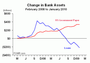I must correct that final statement. The funds required for the bailout are mostly obtained, not from taxes, but are CREATED by the government and the banking system as new massive government debts are monetized. This is the classic inflation of the money supply, i.e., debasement of the currency.–t.h.g.
